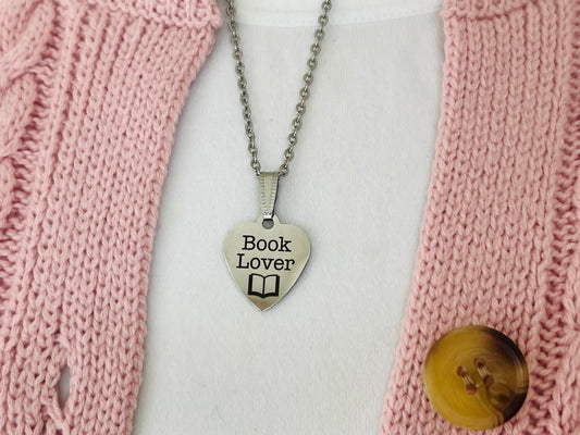Book Lover Silver Pendant, Stainless Steel