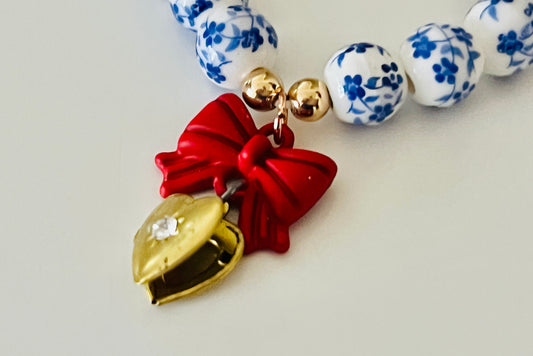 Blue and White Chinoiserie Vintage Heart Locket Bracelet