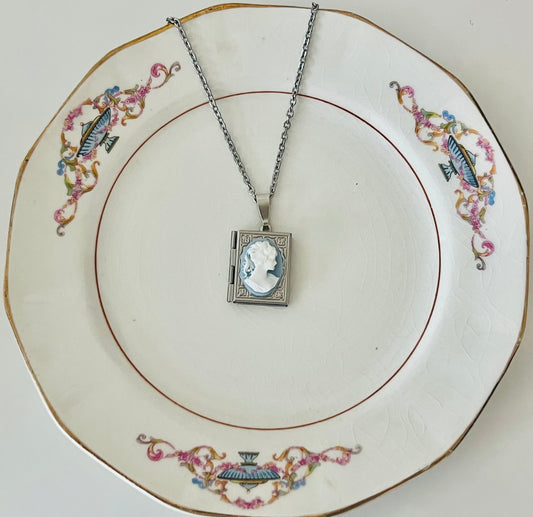 Blue White Cameo Book Locket Necklace
