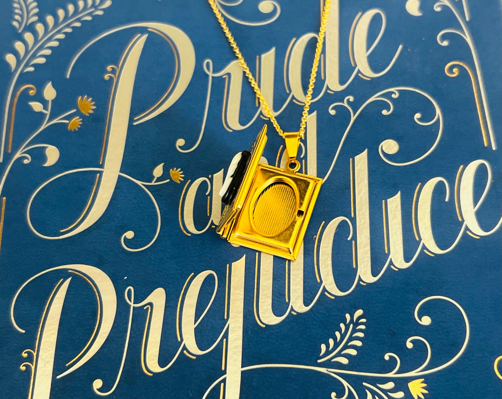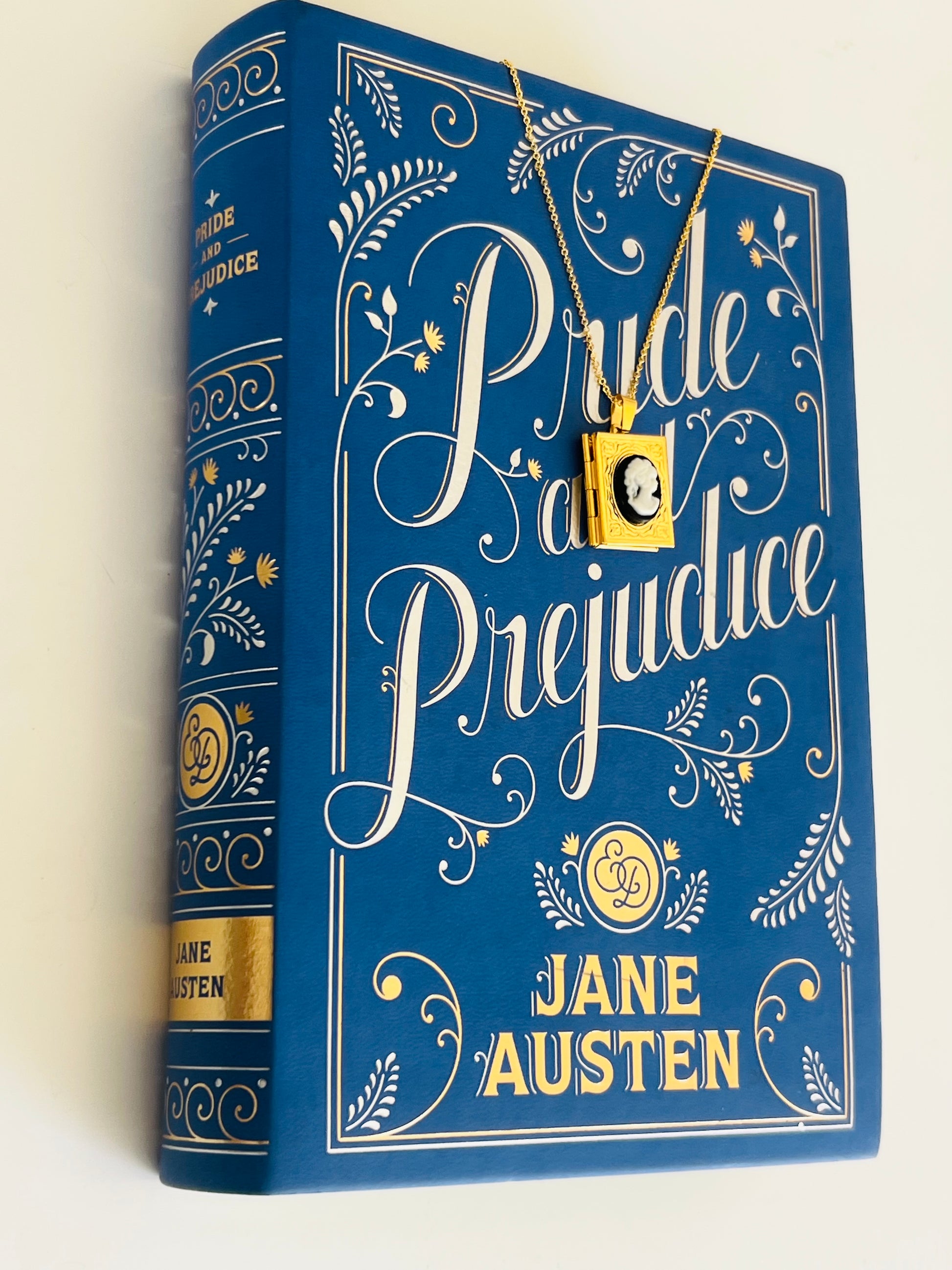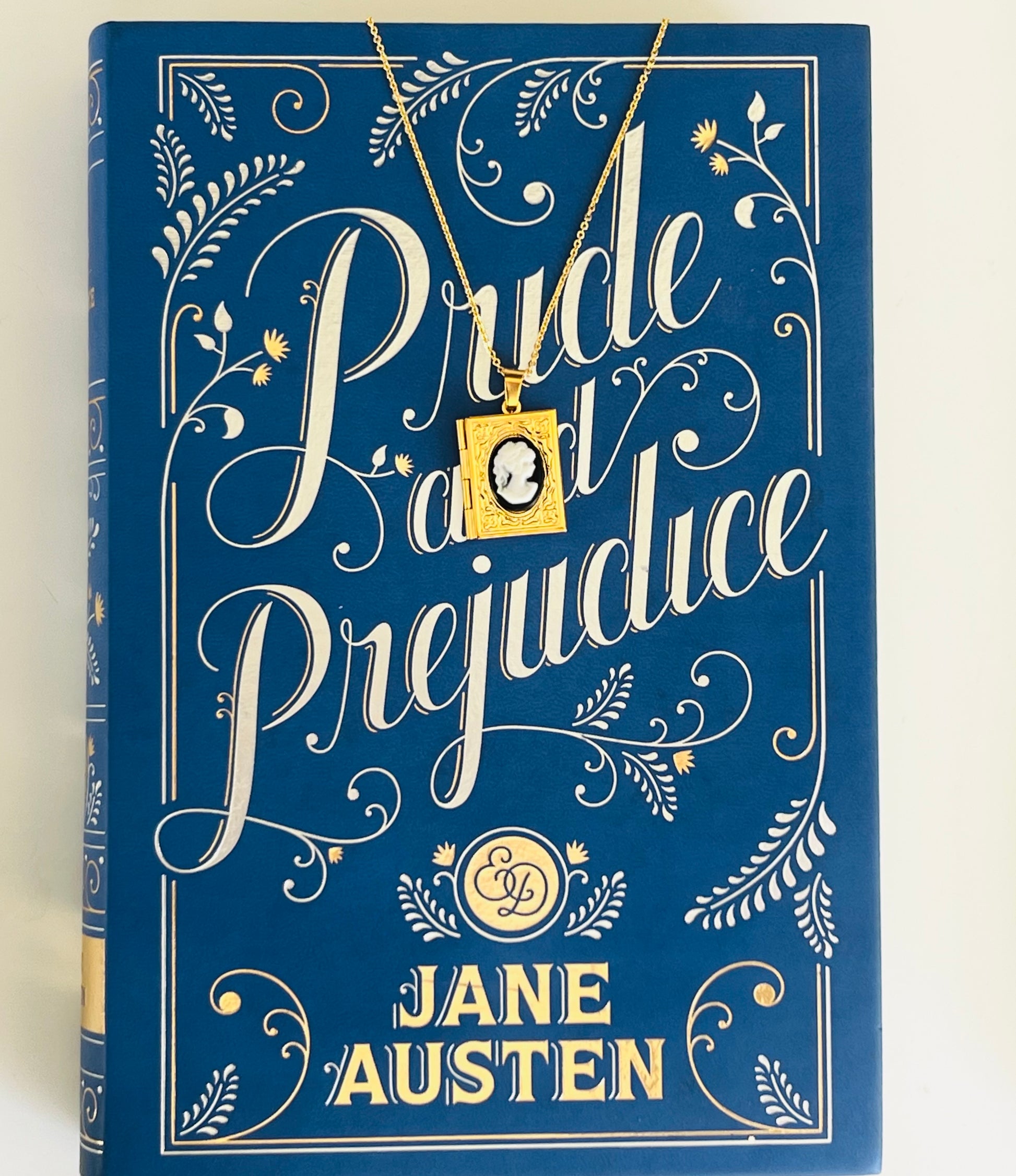 Pride and Prejudice Book by Jane Austen and Cameo Book Locket Necklace