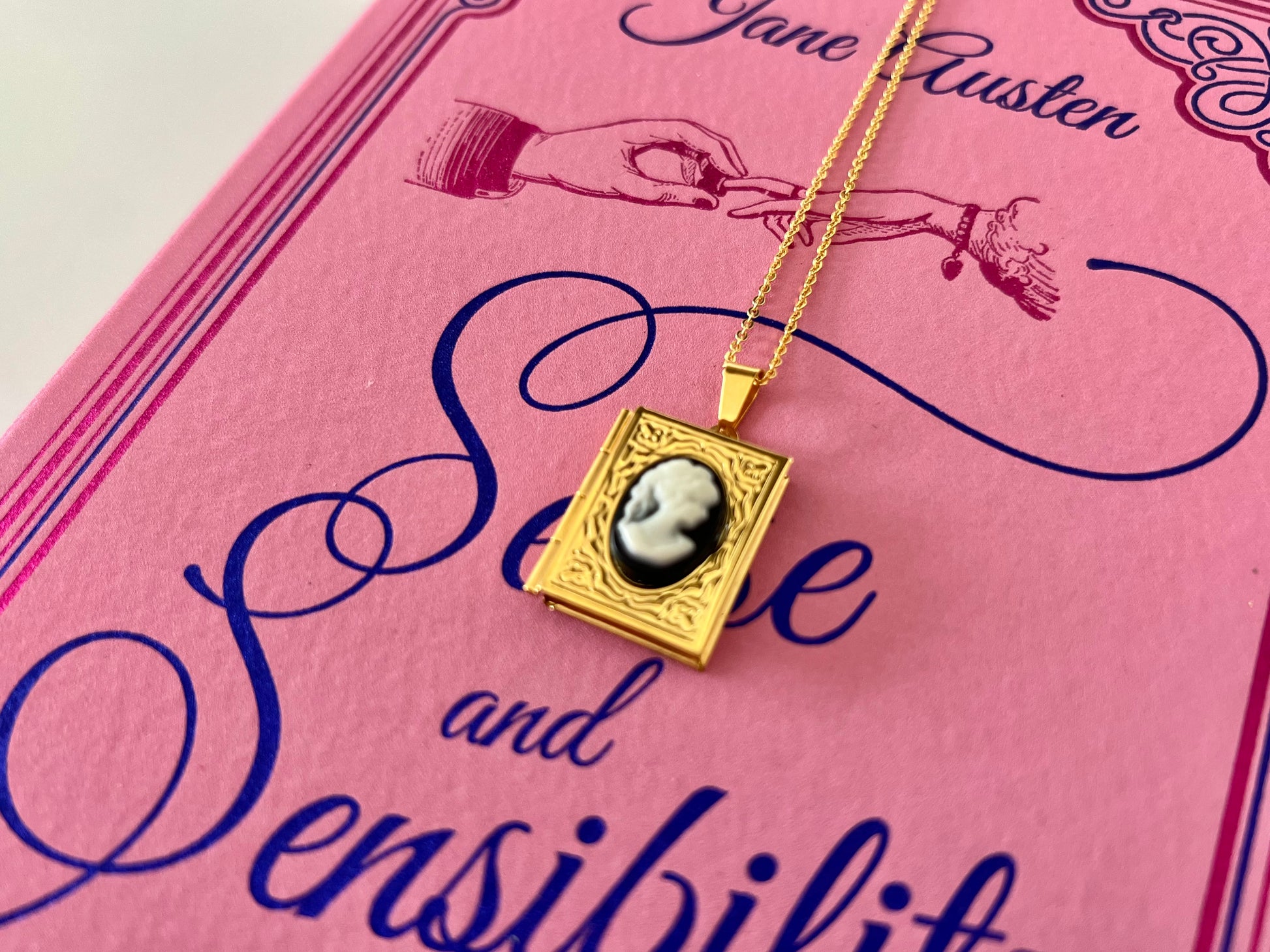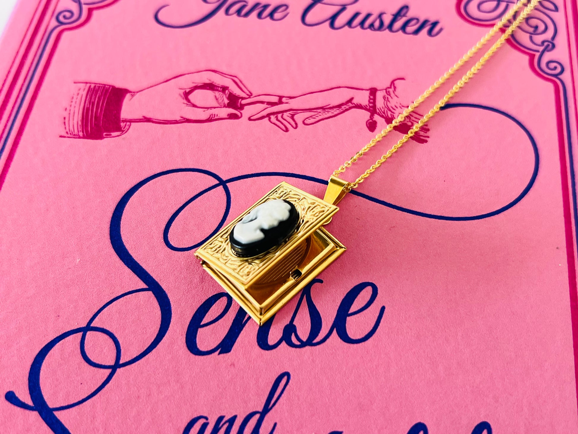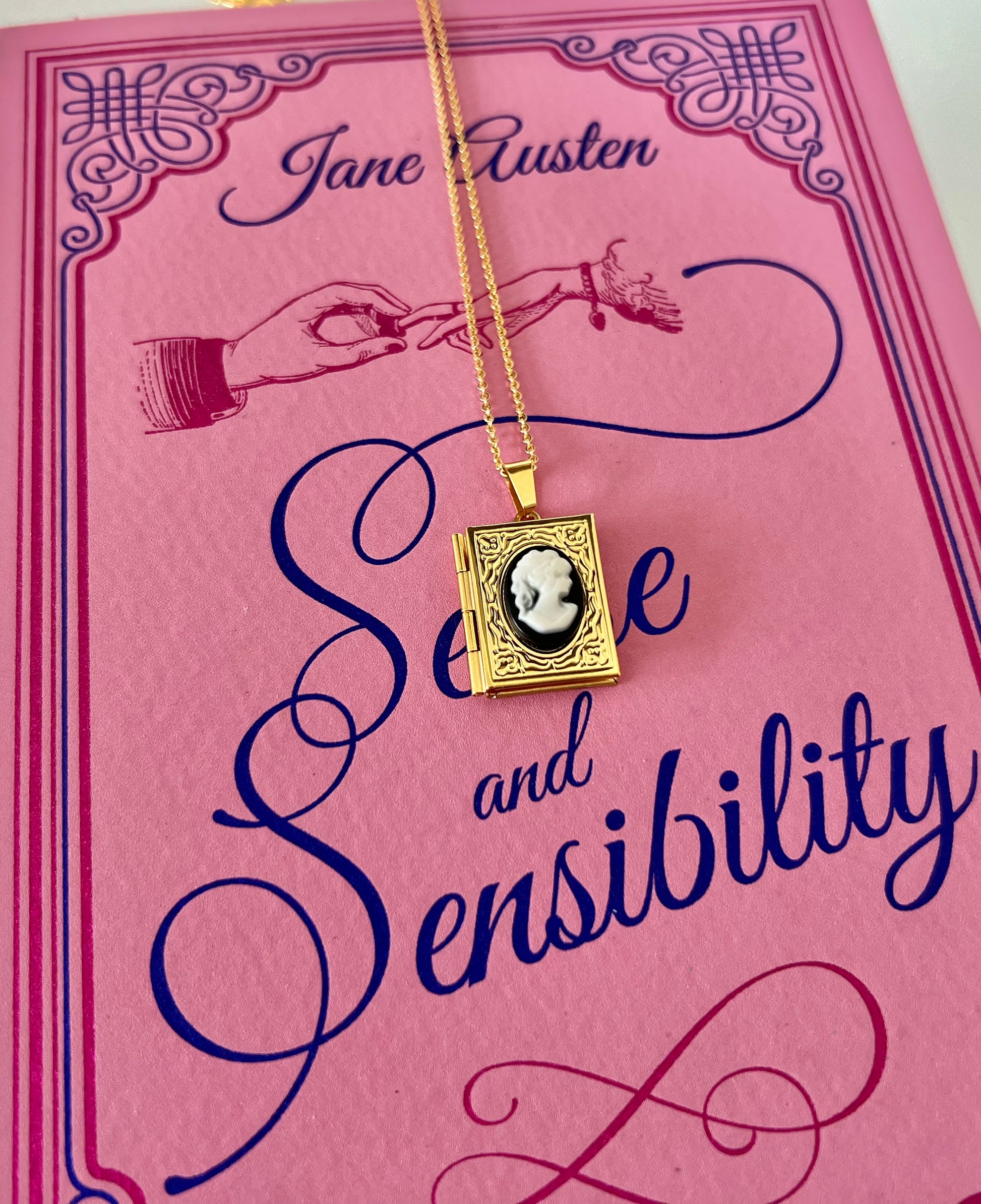 Sense and Sensibility Book, Jane Austen with Book Cameo Locket