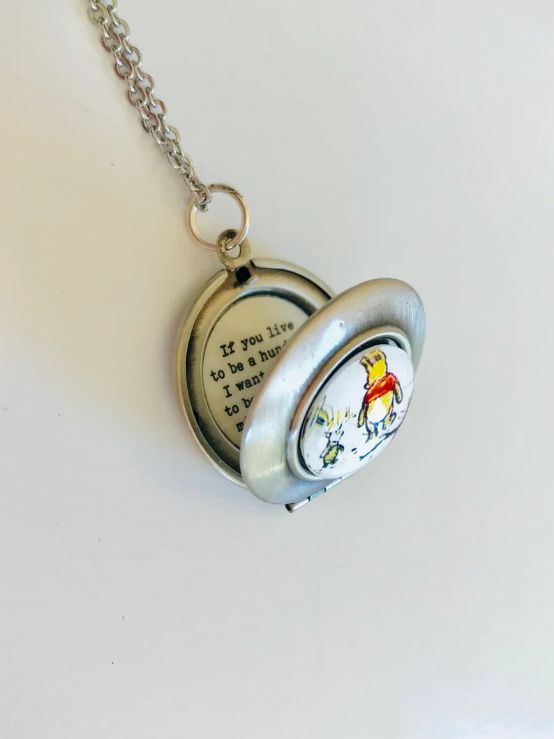 Winnie the Pooh Locket with quote- If you live to be a hundred minus one day - Friendship Jewelry
