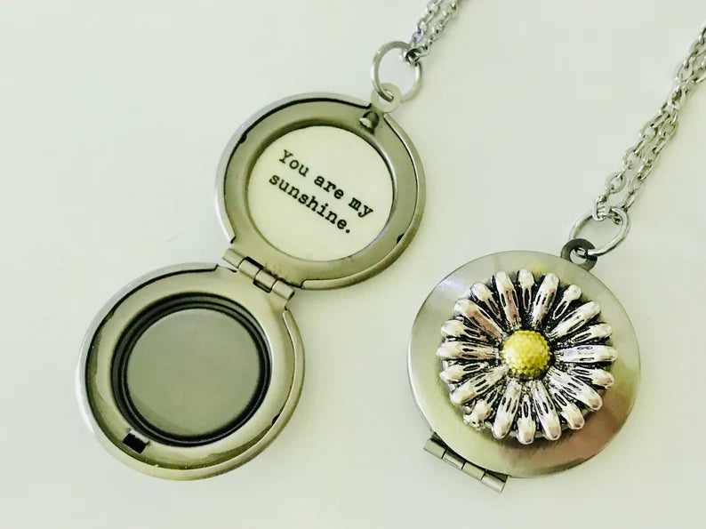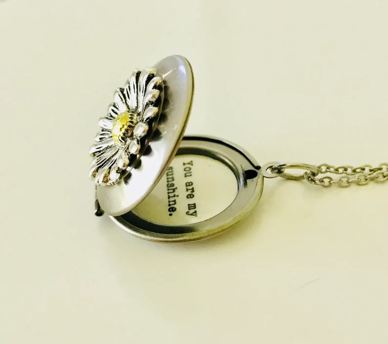 You Are My Sunshine - Necklace- Locket - Quote Locket - Daughter Gift- Sunflower Jewelry